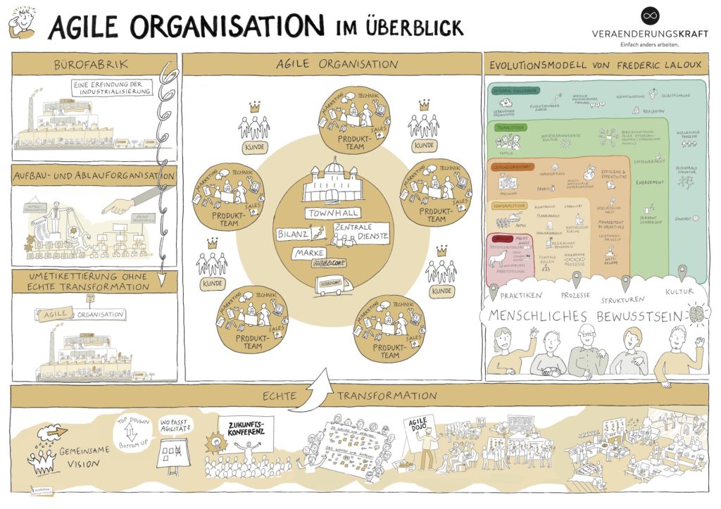 Eine agile Organisation passt sich flexibel an Veränderungen an und fördert selbstorganisiertes Arbeiten.